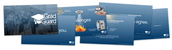 We’re not kidding.It’s just six slides because the conversation is all about you.Fill out the form and we'll be in touch Name * First Name Last Name School Email * Thank you!A GradGuard representative will contact you shortly. In the meantime, learn more about our innovative products that protect schools from financial losses due to the risks of college life.